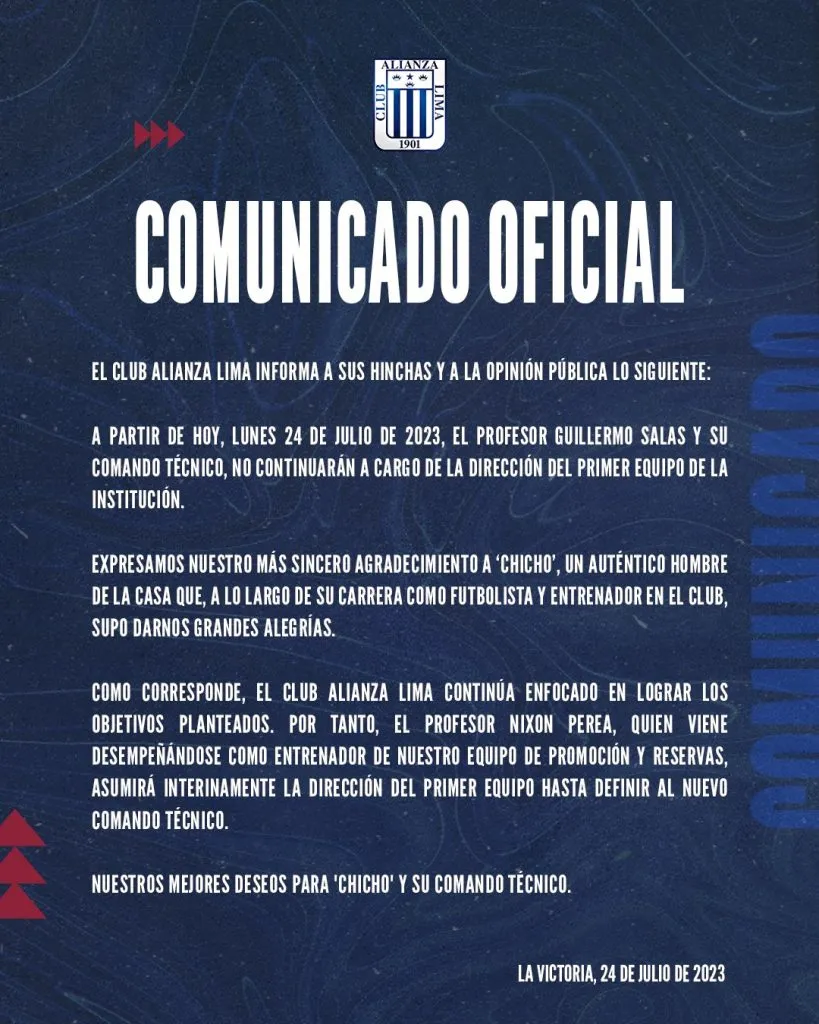 Justamente este lunes 24 de julio, fue clave para la dirigencia y para Chicho, ya que todos estaban alertas a la postura que se iba a tomar, hasta que se dio ahora por la noche.