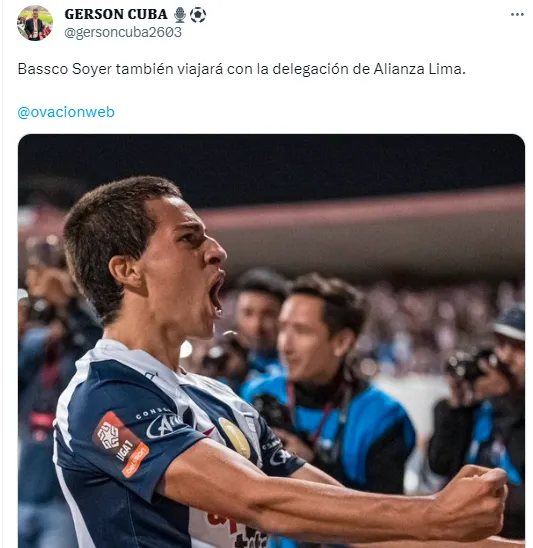 “Bassco Soyer también viajará con la delegación de Alianza Lima”, anunció el comunicador, en su cuenta oficial de X (anteriormente conocida como Twitter).
