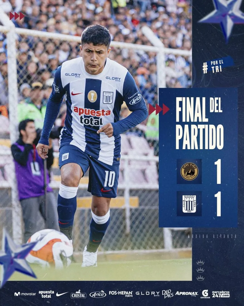 Con el empate 1-1, Alianza Lima se queda con 13 unidades, a 7 del líder, el compadre: Universitario de Deportes. No es un gran resultado desde lo cuántico, porque avanzan las fechas en el Torneo Clausura. Sin embargo, puede ser el inicio correcto de la era Mauricio Larriera en un lugar difícil como la ciudad imperial.