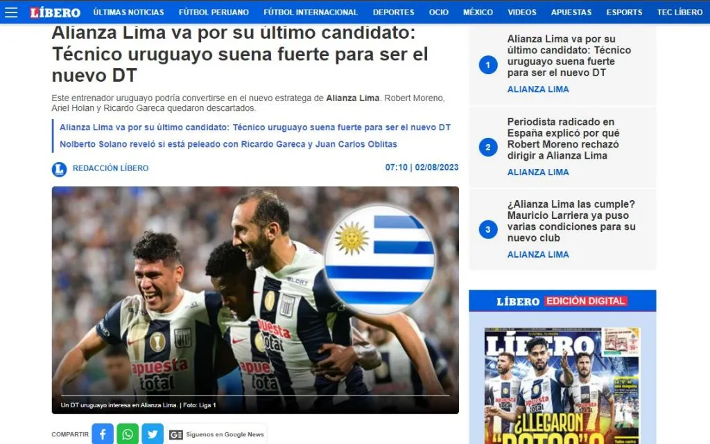 Finalmente, el medio de comunicación hace la salvedad para todos los hinchas de Alianza Lima. Aún no está completamente finiquitado: “Es importante tener en cuenta que todavía no se ha confirmado la llegada del director técnico al conjunto victoriano. Por ahora, todo parece indicar que es el único que está siendo considerado, pese a que otros nombres surgieron en las últimas semanas”.