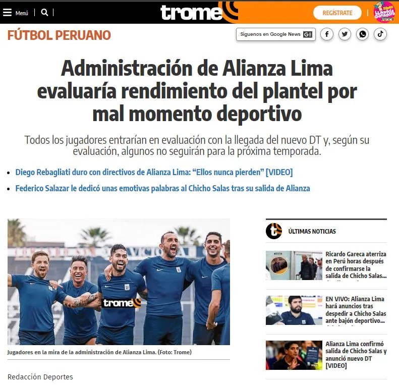 Así arranca su artículo el popular medio de comunicación: “No siempre ‘muerto el perro se acaba la rabia’, como dice el refrán. A veces hay que mirar más allá. Ante la salida oficial de Guillermo Salas de Alianza Lima, ahora se apunta al plantel por los malos resultados y la división que habría en el vestuario”.