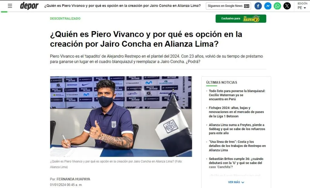 Dándole un detalle extra al hincha blanquiazul, fuera de lo mencionado sobre Piero Vivanco: “En tanto en lo que va el armado del plantel de Alianza Lima con miras al 2024, cabe recordar que Vivanco tendría que competir el puesto con otros futbolistas como Gabriel Costa, Catriel Cabellos, Adrián Arregui, Jesús Castillo, Enzo Borletti y un posible refuerzo extranjero que hará las veces de volante ofensivo”.