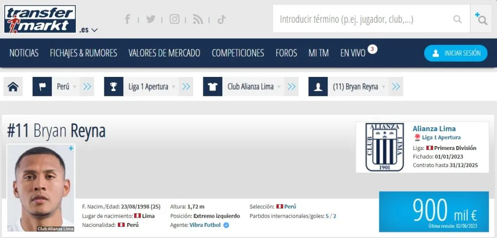 Bryan Reyna está en subida luego de su convocatoria a la Selección Peruana y Alianza Lima sabe muy bien eso. Aumentando su valor considerablemente, el club íntimo no se equivocó cuando decidió no venderlo a Gremio de Porto Alegre. Ahora estando en 7 dígitos, se estima que siga en auge.