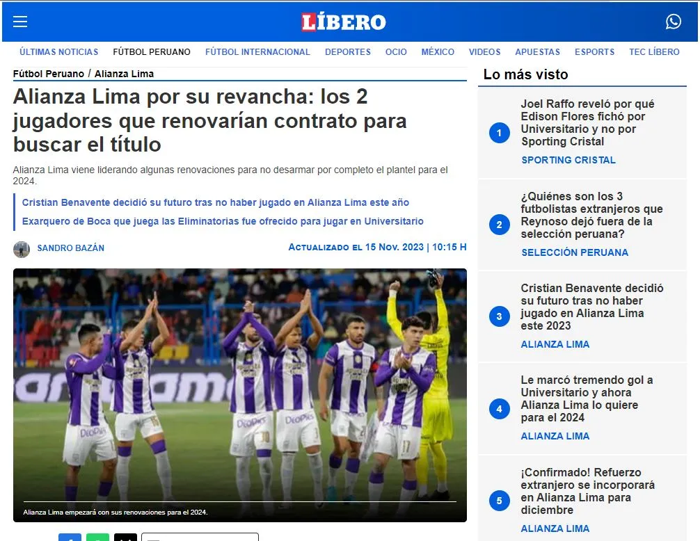 Los íntimos de La Victoria cuentan con una idea principal, no perder a ningún futbolista de nivel: “El “Pirata” tuvo una conversación hace un mes con Alianza Lima, quien se mostró interesado en su renovación. El argentino presentó todos los documentos para su nacionalización y así abrir otra plaza de extranjeros para los “íntimos”. De no mediar inconvenientes, jugará su último año previo a su retiro con camiseta aliancista”.
