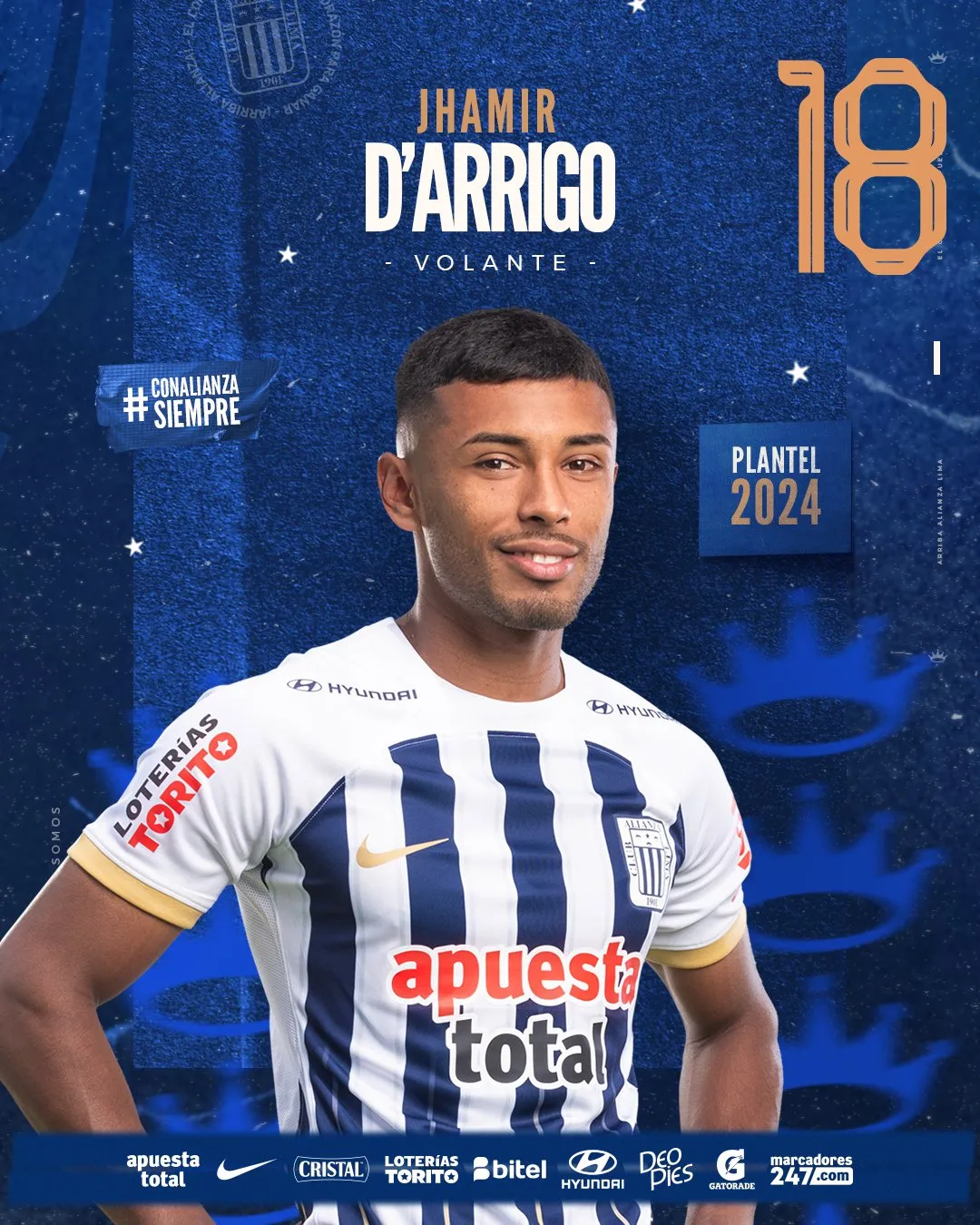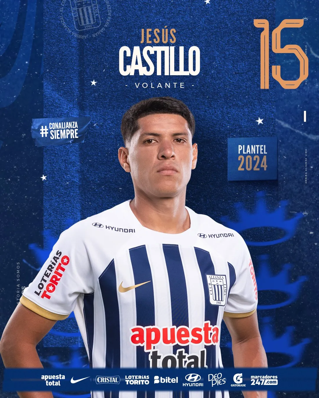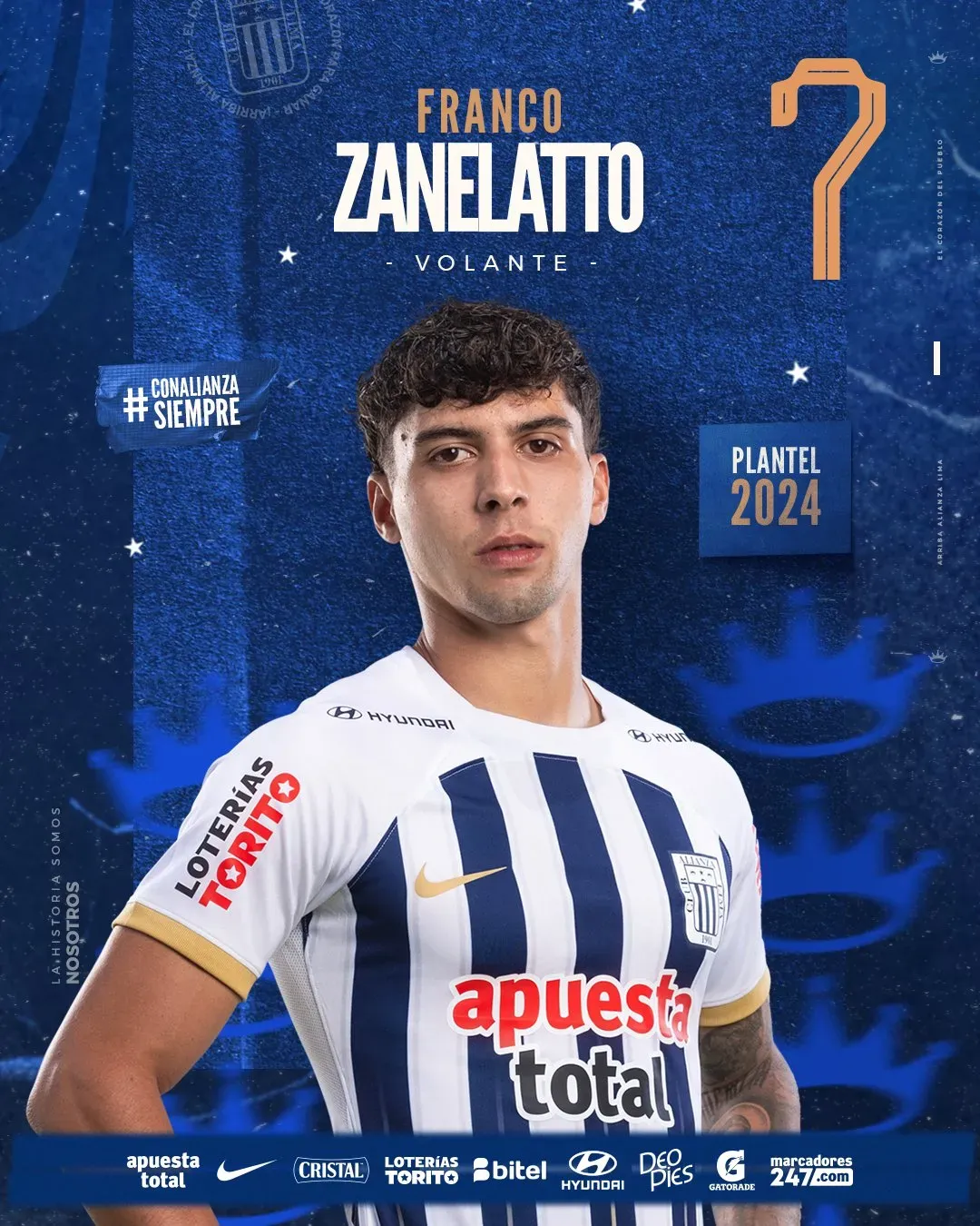 Alianza Lima 2024 - Volantes: 16 Piero Vivanco 15 Jesús Castillo 27 Catriel Cabellos 5 Adrián Arregui 18 Jhamir D' Arrigo 14 Axel Moyano 80 Bassco Soyer 26 Kevin Serna 7 Franco Zanelatto 8 Gabriel Costa 11 Bryan Reyna 10 Sebastián Rodríguez