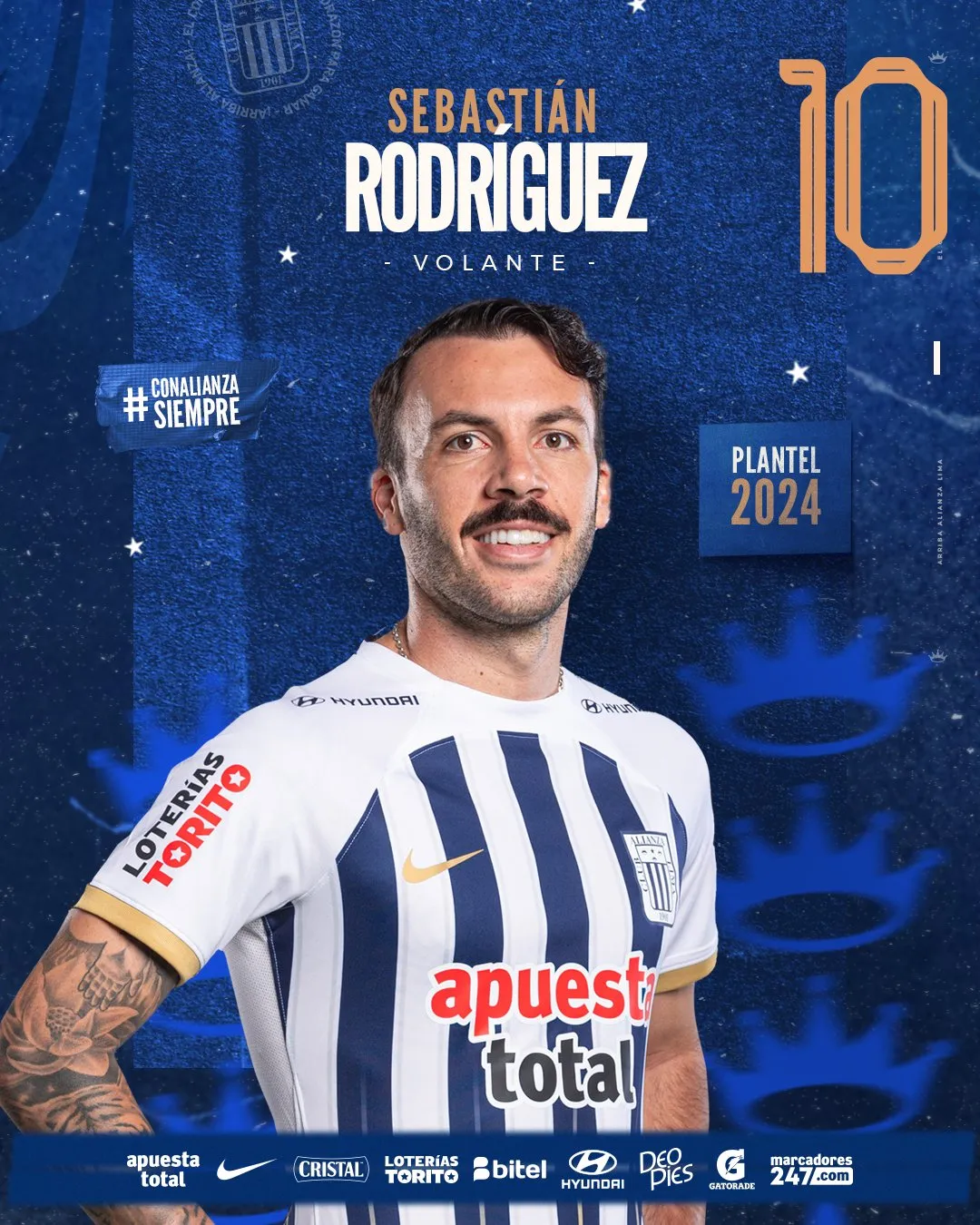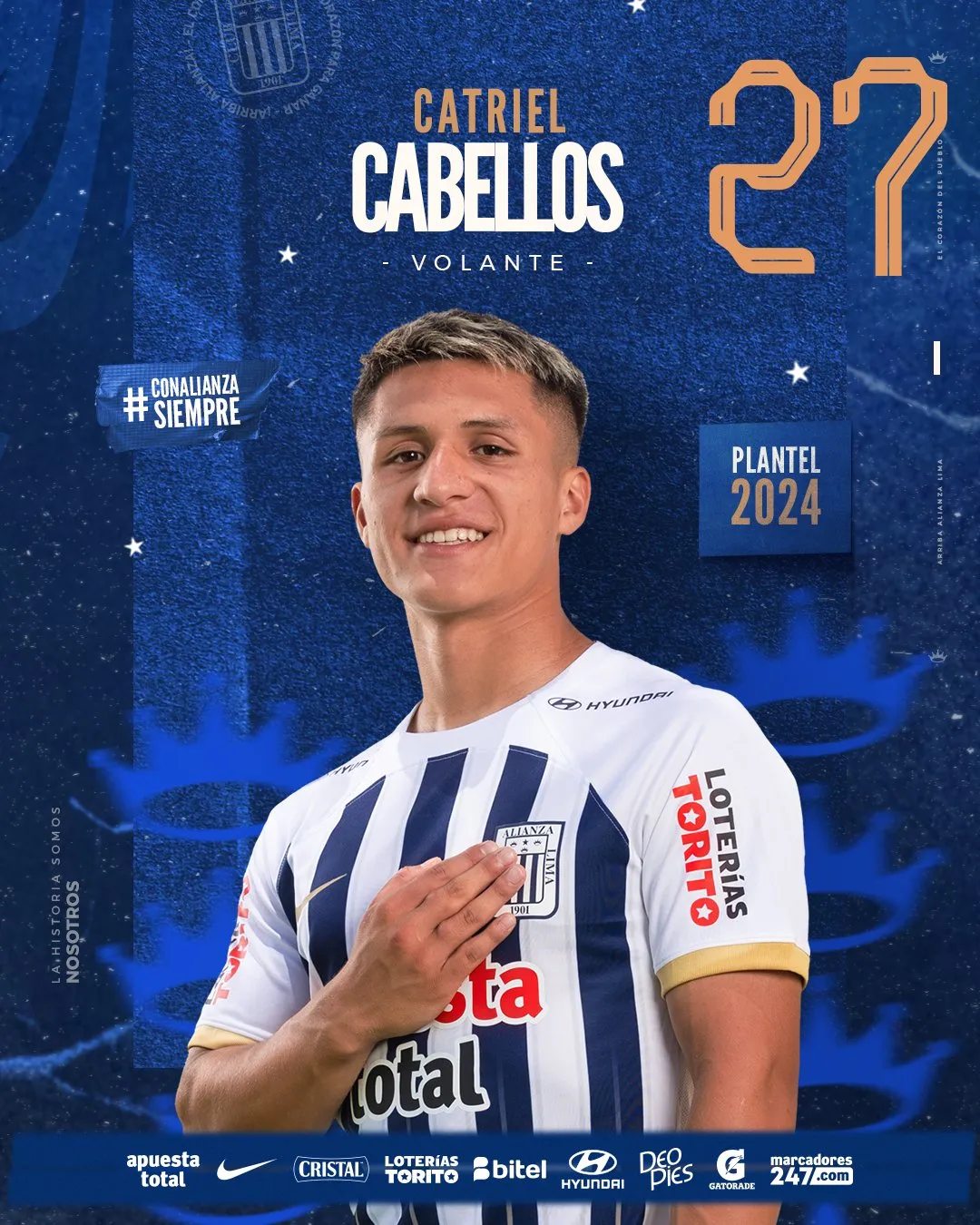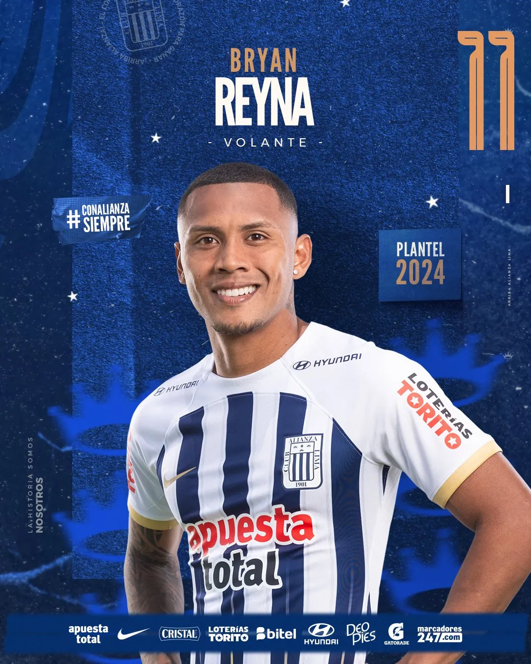 Alianza Lima 2024 - Volantes: 16 Piero Vivanco 15 Jesús Castillo 27 Catriel Cabellos 5 Adrián Arregui 18 Jhamir D' Arrigo 14 Axel Moyano 80 Bassco Soyer 26 Kevin Serna 7 Franco Zanelatto 8 Gabriel Costa 11 Bryan Reyna 10 Sebastián Rodríguez
