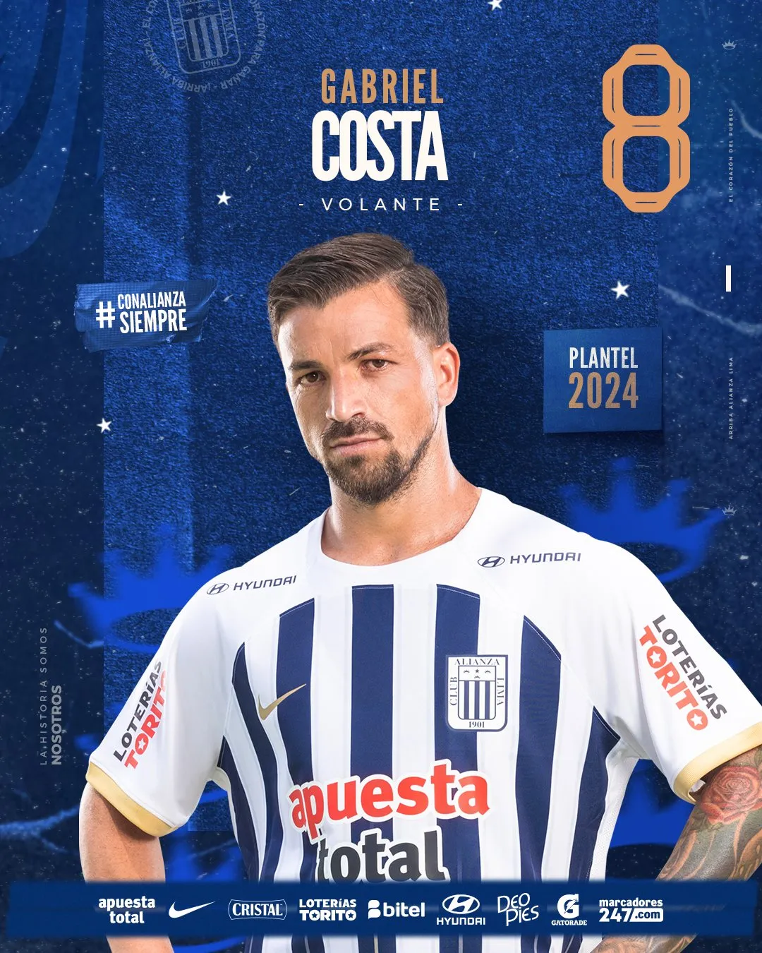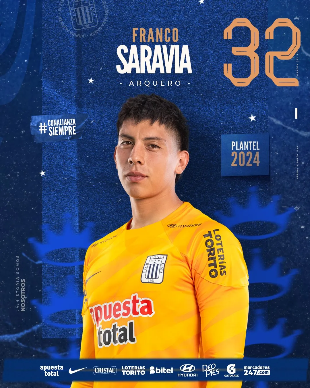 Alianza Lima 2024 - Arqueros: Ángelo Campos 1 Franco Saravia 32 Ángel de la Cruz 12 Fabricio Mesías 33