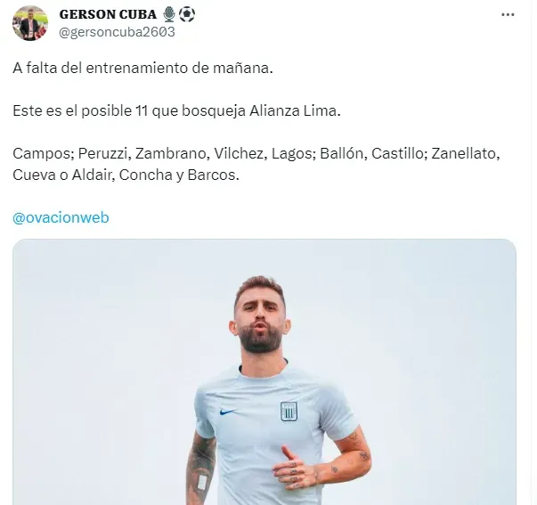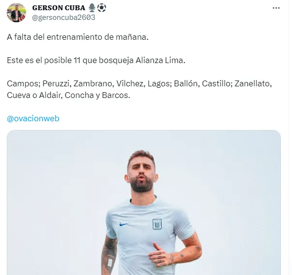 Según las informaciones proporcionadas por el periodista deportivo Gerson Cuba, el entrenador uruguayo está considerando la siguiente alineación: Ángelo Campos en la portería; Gino Peruzzi, Carlos Zambrano, Yordi Vílchez, y Ricardo Lagos en la defensa; Josepmir Ballón y Jesús Castillo en el mediocampo; Franco Zanellato, con la posibilidad de Christian Cueva o Aldair Rodríguez, Jairo Concha y Hernán Barcos en la delantera. Esto fue compartida por el comunicador a través de su cuenta oficial en la plataforma X (anteriormente conocida como Twitter).