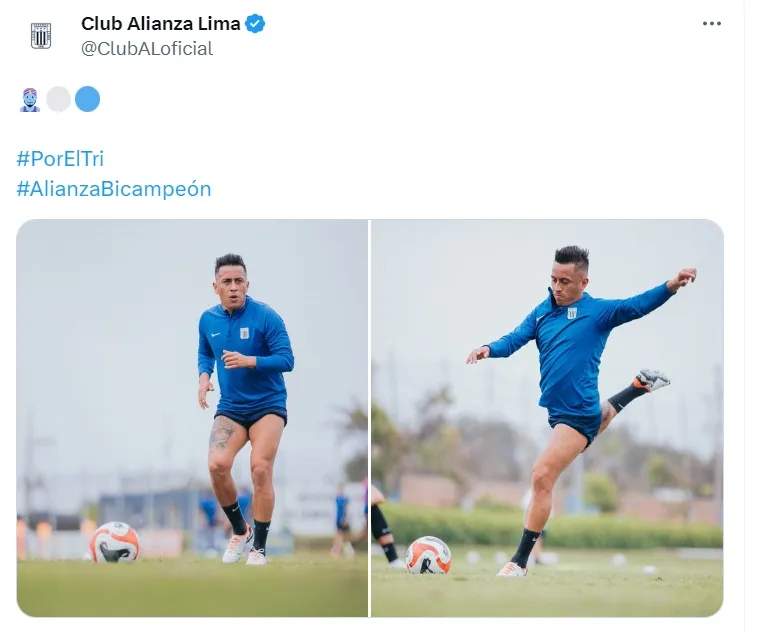 Siendo evidente que ahora tiene una nueva figura, Christian Cueva entrenó con Alianza Lima con un polo manga larga azul y un short azul oscuro. Mostrando una reducción general en todo su cuerpo, el físico que ahora luce impacta por el gran cambio.