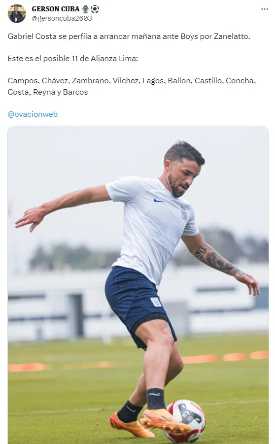 Así pues, el periodista Gerson Cuba confirmó el 11 que va perfilando Salas para el duelo entre Alianza y Boys.