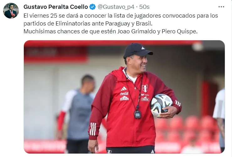 Gustavo Peralta brindó información sobre la lista de convocados en su cuenta de Twitter. Publicando información al detalle, el hombre de prensa reveló qué día será lanzada la noticia.