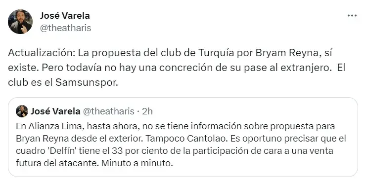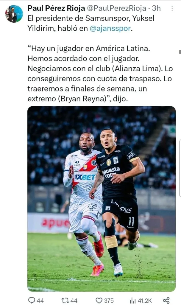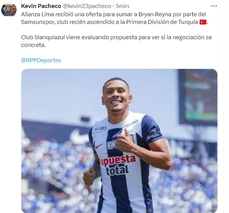 Con esto, varios periodistas que cubren Alianza Lima confirmaron la noticia. Llegando la información a través de José Varela, Kevin Pacheco y Paul Pérez Rioja, el pase parece estar totalmente acordado.