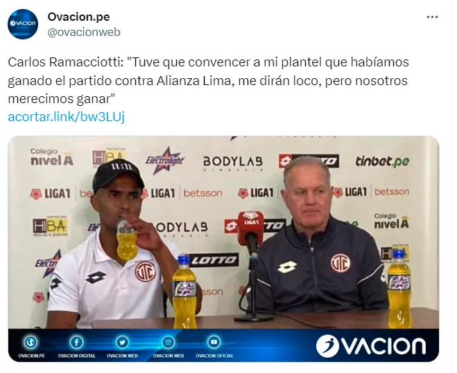 “Tuve que convencer a mi plantel que habíamos ganado el partido contra Alianza Lima, me dirán loco, pero nosotros merecimos ganar”, comentó el argentino.