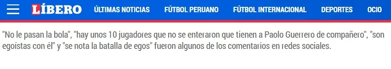 “No le pasan la bola”, “hay unos 10 jugadores que no se enteraron que tienen a Paolo Guerrero de compañero”, “son egoístas con él” y “se nota la batalla de egos”, fueron varios los comentarios que se quejaron de la posible mala relación que tiene el atacante con el vestuario del cuadro.