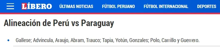 Quedando todo listo para el cotejo entre la Selección Peruana ante Paraguay por la fecha 1 de las Eliminatorias Sudamericanas, el técnico Juan Reynoso empleó un atrevido once que presumiblemente usará en el estadio Antonio Aranda Encina este jueves 7 de septiembre.