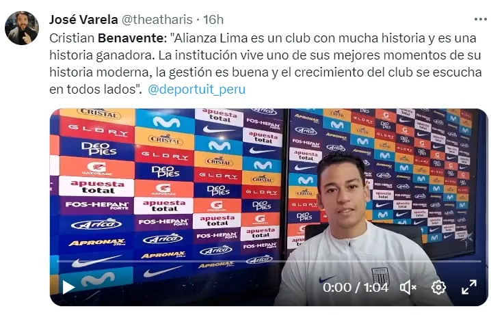 Siguiendo con su argumento, Cristian Benavente dejó en claro que quiere seguir en Alianza Lima: “Sí, me quiero quedar porque es un lugar donde estoy muy cómodo. Acá estoy cómodo, siento que la gente me quiere, el club está creciendo. Al menos del medio local, le gustaría estar, estoy casi seguro de eso”.