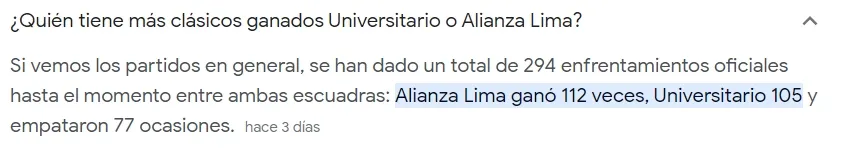 De esta forma, hasta la fecha el cuadro de La Victoria ganó 112 veces, mientras que los de Ate 105 y empataron en 77 para dar un total de 294 clásicos.