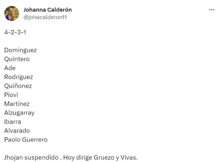 Brindando la noticia la periodista Johanna Calderón, la mujer de prensa reveló el once que empleará Liga de Quito en su duelo ante Ñublense por los octavos de final de la Sudamericana.