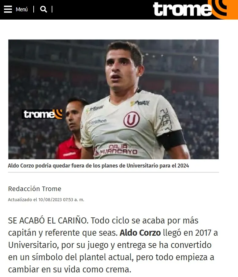 Precisando que Aldo Corzo todavía tiene contrato hasta el 2024, en la ‘U’ no ven viable su presencia. Hablando con él por respeto a su historia, lo cierto es que los directivos no cuentan con él.