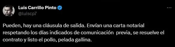Y la pregunta final, como bien consultan los hinchas de los clubes que todavía tienen contrato de GOLPERU ¿Se podría resolver ese contrato?: “Pueden, hay una cláusula de salida. Envían una carta notarial respetando los días indicados de comunicación previa, se resuelve el contrato y listo el pollo, pelada gallina”. Contesta el recordado conductor del Show de Goles.
