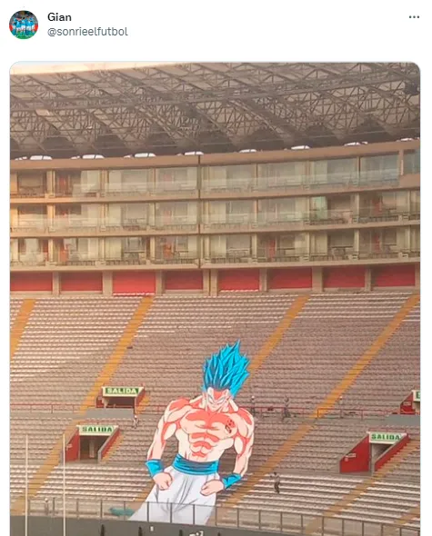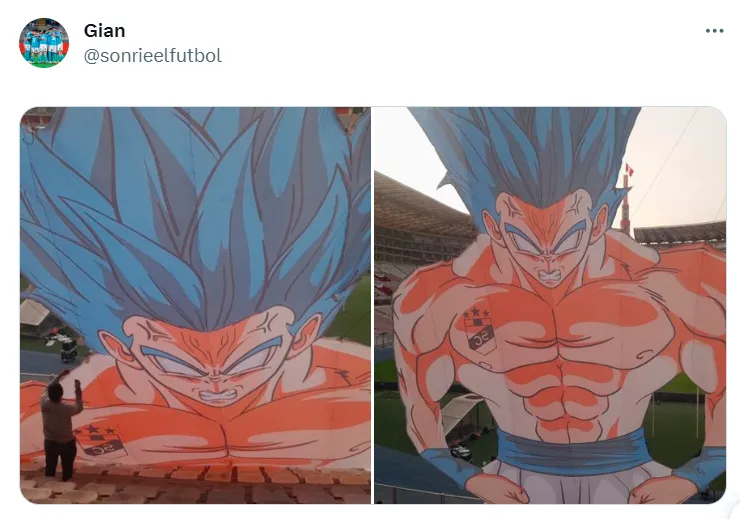 En la previa al emocionante enfrentamiento entre Sporting Cristal y Universitario de Deportes, se ha desatado la sorpresa entre los fanáticos. Una foto capturada en el estadio José Díaz muestra a Goku en su fusión con Vegeta en su icónica transformación de Gogeta Super Saiyajin Azul, el cual comparte colores con la camiseta del equipo local.