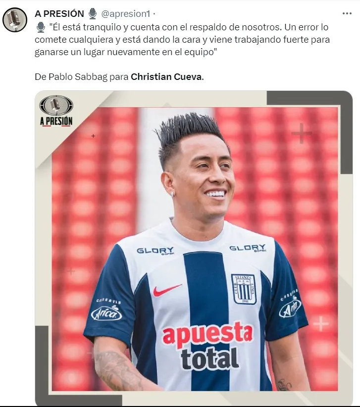 Luego, sacando un comunicado, Alianza Lima informaba que Christian Cueva recibiría una sanción económica.