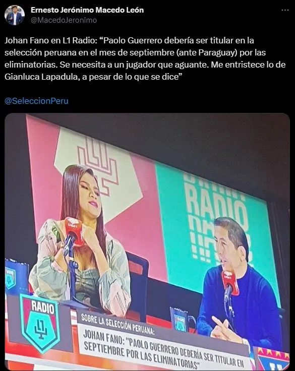 Mediante una charla con Liga 1 Radio, el Gavilán contó sus sensaciones sobre Perú: “Paolo Guerrero debería ser titular en la selección peruana en el mes de septiembre (ante Paraguay) por las eliminatorias. Se necesita a un jugador que aguante. Me entristece lo de Gianluca Lapadula, a pesar de lo que se dice”.