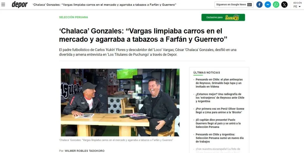 Contando anécdotas de Juan Manuel Vargas, cuando le daba severos castigos a sus compañeros de Selección Nacional: “Limpiaba carros en el mercado de Magdalena. Lo vi hacer dos jugadas, y lo llamé a la selección peruana para que se pruebe. Fue y los agarró a tabas, a todos, a Farfán, a Paolo, y se quedó para toda la vida. Vargas sabe que yo lo quiero mucho, pero es incapaz de una llamada por el día del padre, del técnico, igual que el ‘Mudo’”.