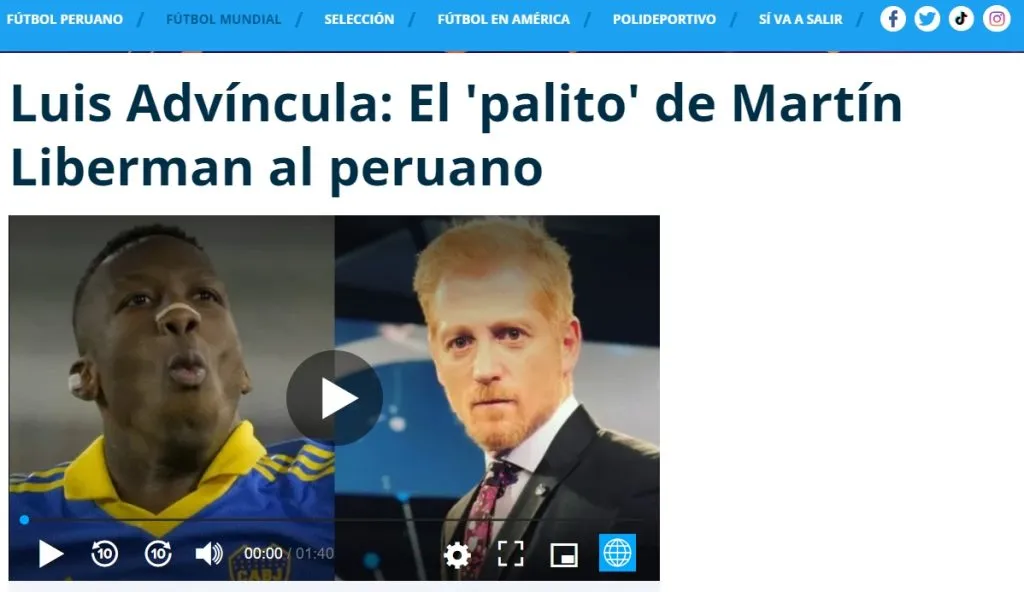 Martín Liberman cuestionó a Luis Advíncula: “Esa victoria, con un Advíncula gigante, le permite a Boca sumar cuatro puntos y tener un colchón para jugar en Santiago de Chile y confirmar su clasificación con otro ‘gigante’ Advíncula, pero que para mí es un jugador normalito”.