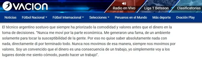 Charlando con Radio Ovación de manera extensa, el estratega Ricardo Gareca tocó un sensible tema, pero oportuno para aclararlo: el valor del dinero. Dejando en claro que no se mueve por plata, el técnico reveló que ese no fue un motivo por el que no continuó en la Selección Peruana.
