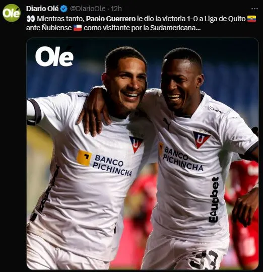 Hasta los propios medios cercanos a su ex club, destacan lo que fue su accionar contra Ñublense. Paolo Guerrero por Copa Sudamericana la descosió toda, lo cual es un motivo para tomar en cuenta. El delantero peruano del equipo ecuatoriano, paga con creces su nivelazo.