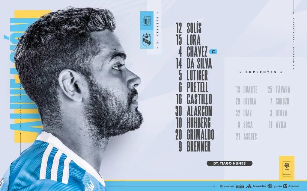 Con todo esto, el estratega bajopontino ha preparado un once que los ayude a lograr los objetivos de esta noche, que va de la siguiente manera: Renato Solis, Jhilmar Lora, Gianfranco Chávez, Ignacio Da Silva, Rafael Lutiger, Jesús Castillo, Jesús Pretell, Jostin Alarcón, Alejandro Hohberg, Joao Grimaldo y Brenner Marlos. Como capitán irá Gianfranco Chávez, esto según la publicación del club.