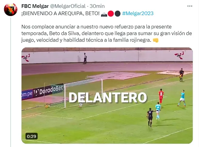 “¡BIENVENIDO A AREQUIPA, BETO! Nos complace anunciar a nuestro nuevo refuerzo para la presente temporada, Beto da Silva, delantero que llega para sumar su gran visión de juego, velocidad y habilidad técnica a la familia rojinegra”, escribió la cuenta oficial del club arequipeño.