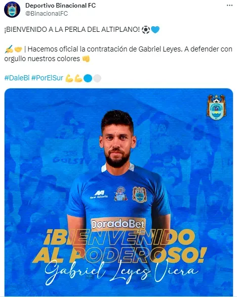 “¡BIENVENIDO A LA PERLA DEL ALTIPLANO! Hacemos oficial la contratación de Gabriel Leyes. A defender con orgullo nuestros colores”, escribió la cuenta oficial de los Pumas del Sur.