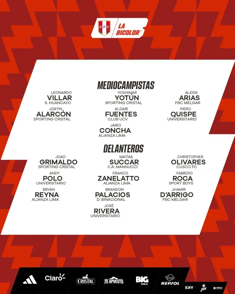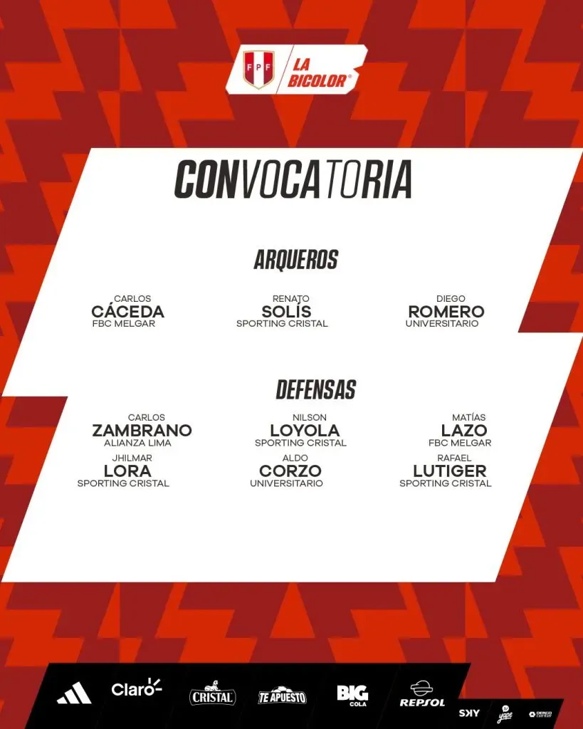 LISTA DE CONVOCADOS DE LA SELECCIÓN PERUANA: