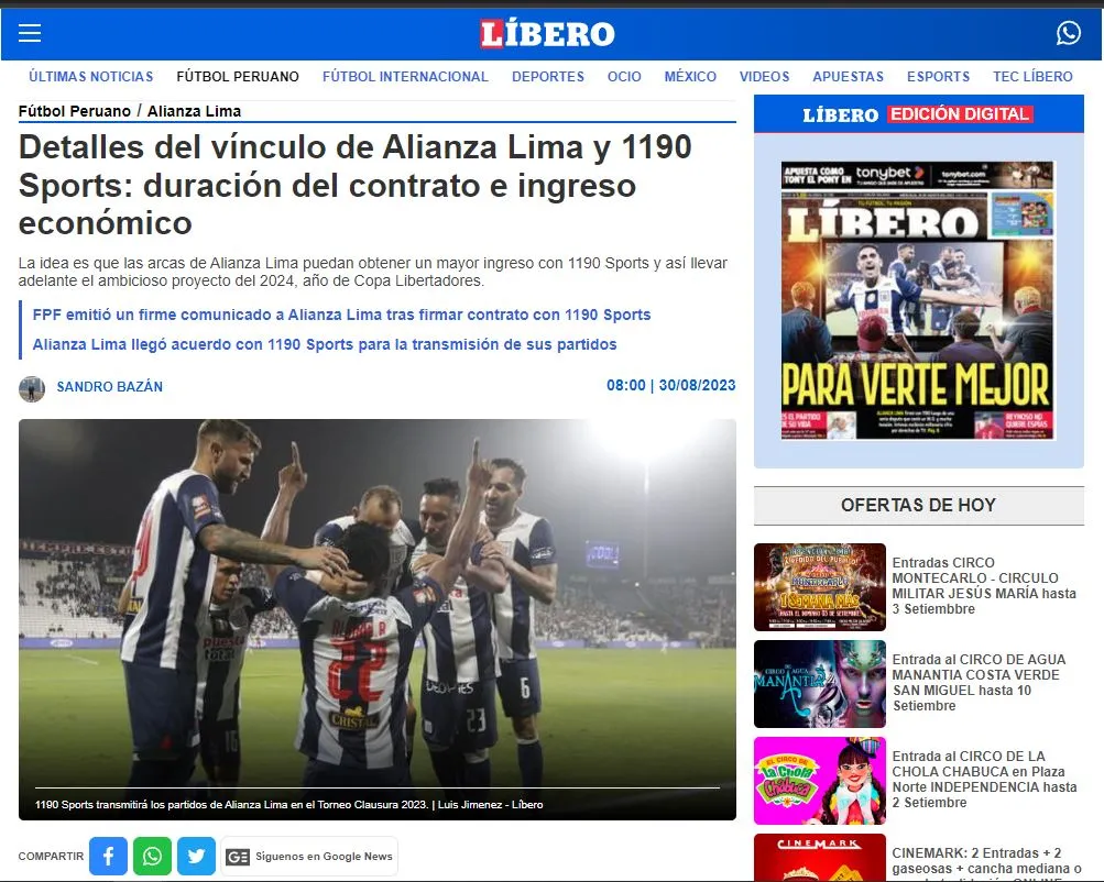 Supuestamente, Alianza Lima iba a ganar un dinero impagable por otra cadena internacional, y sería considerado como el mejor partner de la localidad. Gracias a la gestión de la Liga 1 como organización, esto no funcionó, y tuvieron que ir a negociar con 1190 Sports.