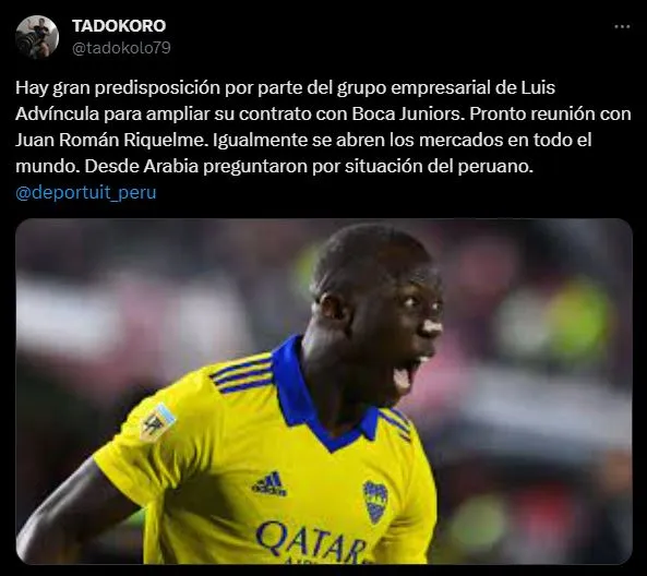 Es más, el periodista Jonathan Riniti señaló hace poco lo siguiente, un mensaje donde se valora mucho al ex Sporting Cristal: “Desde Brasil aceleran por Advíncula. Más allá del Santos, Fluminense y Corinthians, otro elenco carioca quiere al peruano, por lo que Juan Román Riquelme no quiere saber nada con perder, como pasa con Miguel Merentiel que son claves en Boca”.
