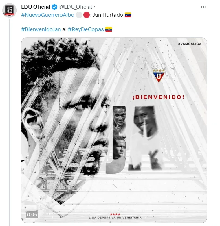 Llegando en calidad de cedido desde Boca Juniors, el cuadro ecuatoriano oficializó la llegada de Jan Hurtado, delantero venezolano arriba así a Ecuador tras estar en Argentina y Brasil.
