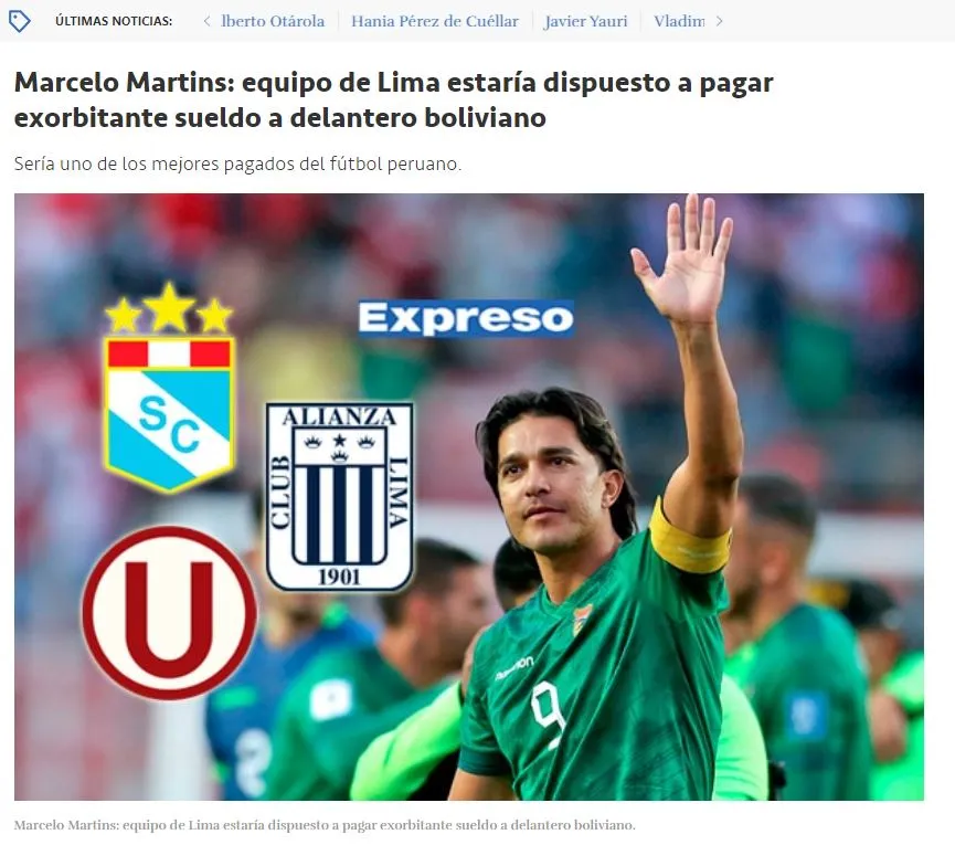 Para después ir a la idea principal de esta nota, donde expone lo que desea ganar Marcelo Martins Moreno en su nuevo club aproximadamente: “De esta manera, el club del Rímac, a diferencia de la ‘U’ y Alianza Lima -que ya tienen acuerdos avanzados con delanteros extranjeros-, rompería el ‘chanchito’ y podría ofrecer al boliviano uno de los mejores pagos del torneo peruano: 30 mil dólares”.