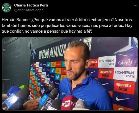 A lo que llegó una respuesta de Hernán Barcos, después de anotar el gol del triunfo ante Sport Huancayo: “Yo creo que habría que capacitar y perfeccionar a los árbitros peruanos. ¿Por qué vamos a traer árbitros extranjeros? No me parece, pero bueno, cada uno hace y piensa lo que quiere”.