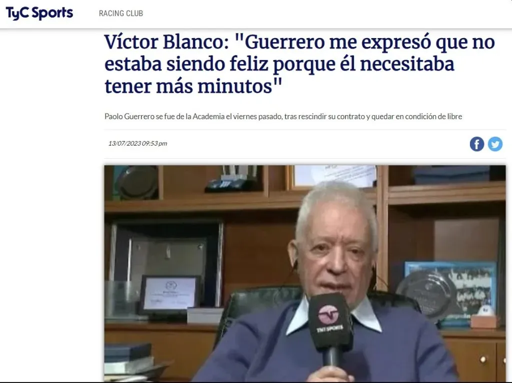 Pasando una semana desde la salida de Paolo Guerrero de Racing Club, algunos cabos andan sueltos y Víctor Blanco, presidente de la ‘Academia’, salió al frente para resolverlos.