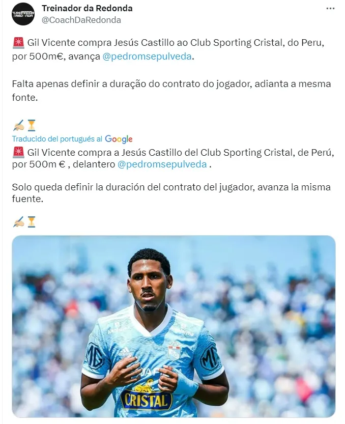 Con 22 años, Jesús Castillo dejará Sporting Cristal. Habiendo debutado en el cuadro celeste, Gil Vicente será el segundo club del volante y nada más y menos que en Europa.
