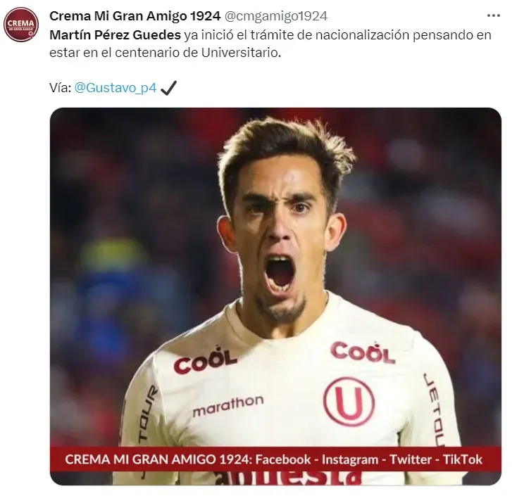Así pues, no ocultando su deseo de seguir en Universitario, el volante argentino Martín Pérez Guedes confesó su más grande deseo: seguir de crema para el centenario de la temporada 2024.