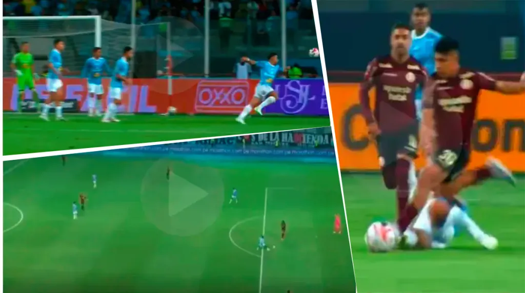 Los merengues se preocuparon en esta jugada, porque su estrella casi queda lesionado por la fuerte falta del volante celeste. En el mediocampo Jesús Pretell intentó trabar a Piero Quispe, y lo dejó tirado en el piso unos minutos.