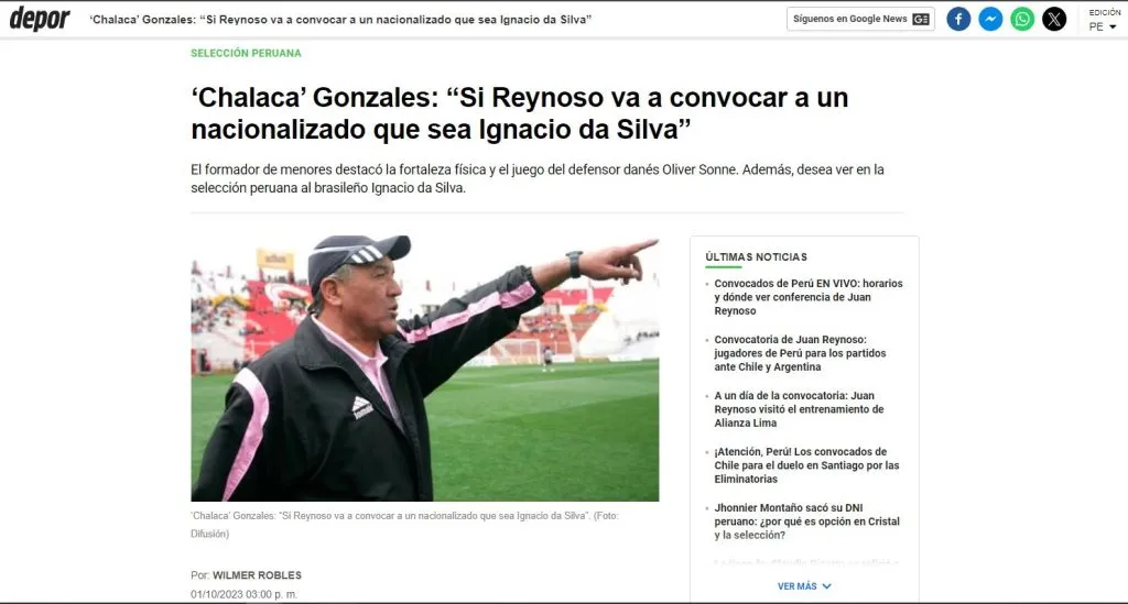 También opinó sobre el presente de Ignácio da Silva de Sporting Cristal: “Me parece bien que vean jugadores con ascendencia peruana. Es muy distinto a que Reynoso convoque a jugadores nacionalizados peruanos. Acá se quedaron muchos como Ballesteros, Quiroga, Ibáñez. Si va a convocar a un jugador nacionalizado peruano que sea Ignacio da Silva. Es un buen jugador. Un lujo. A mí sí me gustaría verlo en la selección. Ya no los Calcaterra, Costa”.
