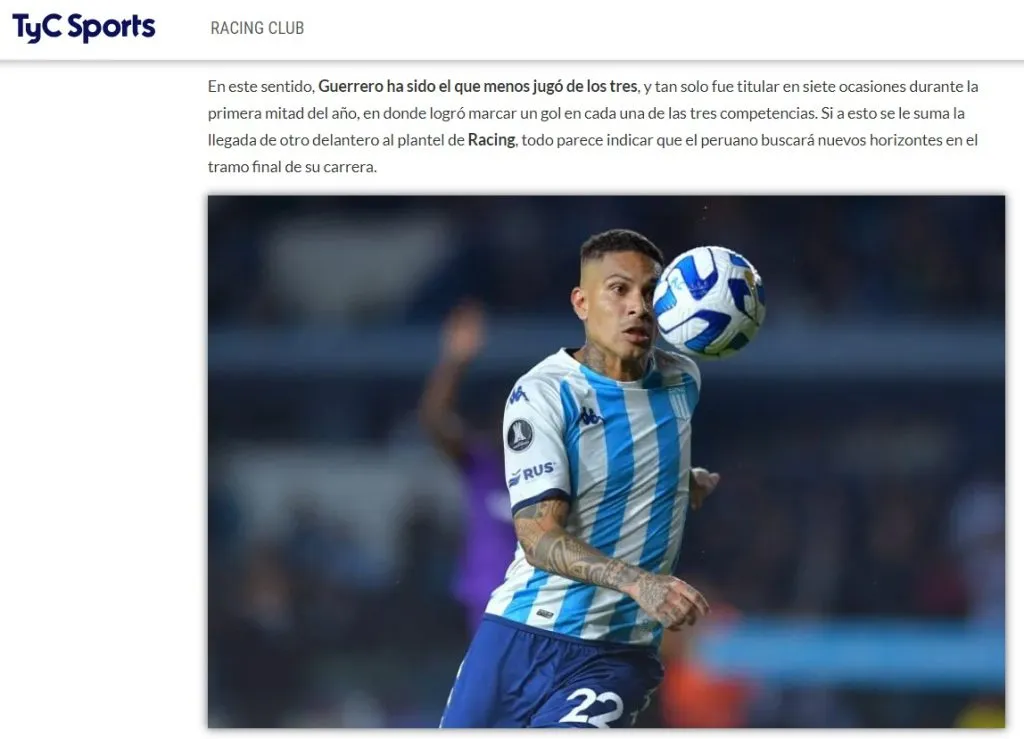 Comentando que Paolo Guerrero es el delantero que menos partidos jugó con Racing, solo fue titular 7 veces, su situación se complicaría tras la llegada de un nuevo delantero.