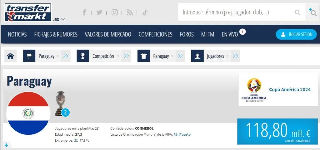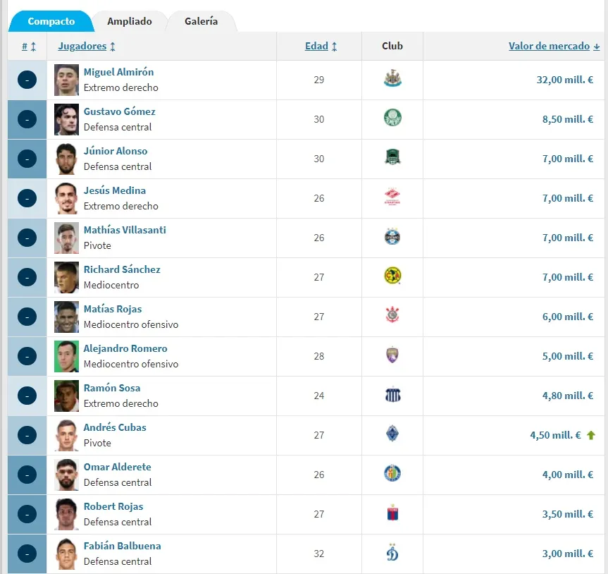 Para que tengan una idea de la magnitud de la diferencia, solo el plantel de Perú vale 32 millones de euros, mientras que el 11 de Paraguay cuesta 60 millones de euros. Hay que decirlo también que solo Miguel Almirón vale como 32 millones de euros.