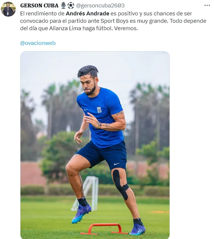 “El rendimiento de Andrés Andrade es positivo y sus chances de ser convocado para el partido ante Sport Boys es muy grande”, empezó el hombre de prensa.