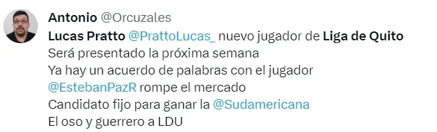 Buscando uno más para competir en la Sudamericana y el torneo local, Liga de Quito iría por el fichaje de Lucas Pratto.