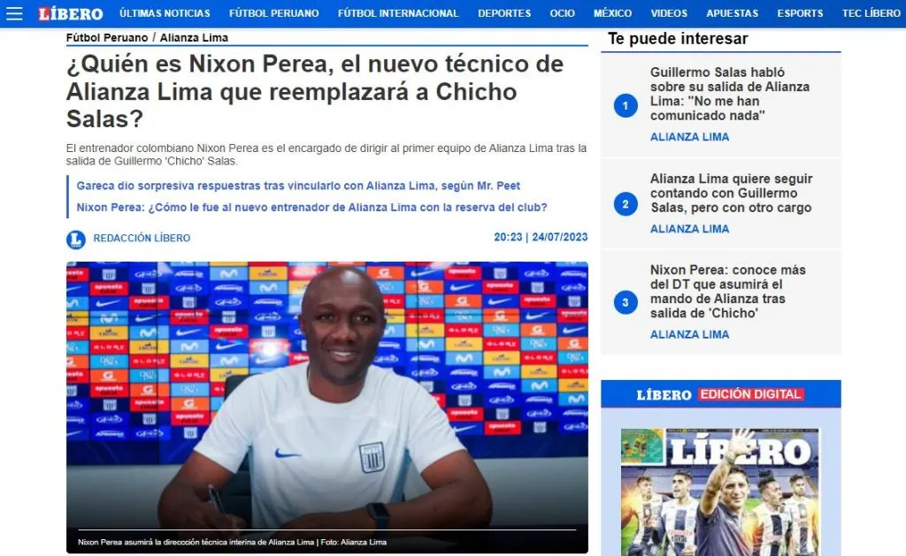Lo detalla bien el Diario Líbero en su página web: “Conocido ese panorama, LÍBERO pudo conocer que el director técnico colombiano de la reserva de Alianza Lima, Nixon Perea, será el encargado de asumir el mando interino del elenco bicampeón, mientras se nombra al reemplazante del entrenador nacional. A continuación, conoce más sobre su perfil profesional”.
